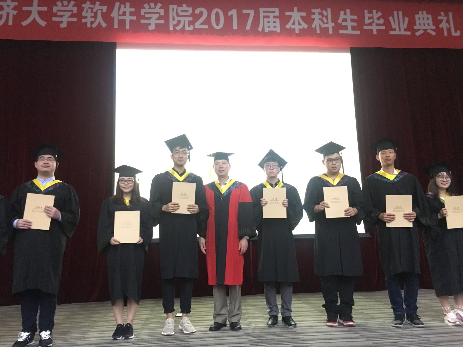 6月29日下午,软件公司2017年本科生毕业典礼暨学位授予仪式在在四平校区逸夫楼礼堂举行。Bevictor韦德党委副书记姜富明教授、公司合作企业代表合合信息副总裁陈青山先生,院友美国国家仪器公司技术总监沈祥先生、公司党政领导、教授及老师代表、员工家长代表出席典礼。