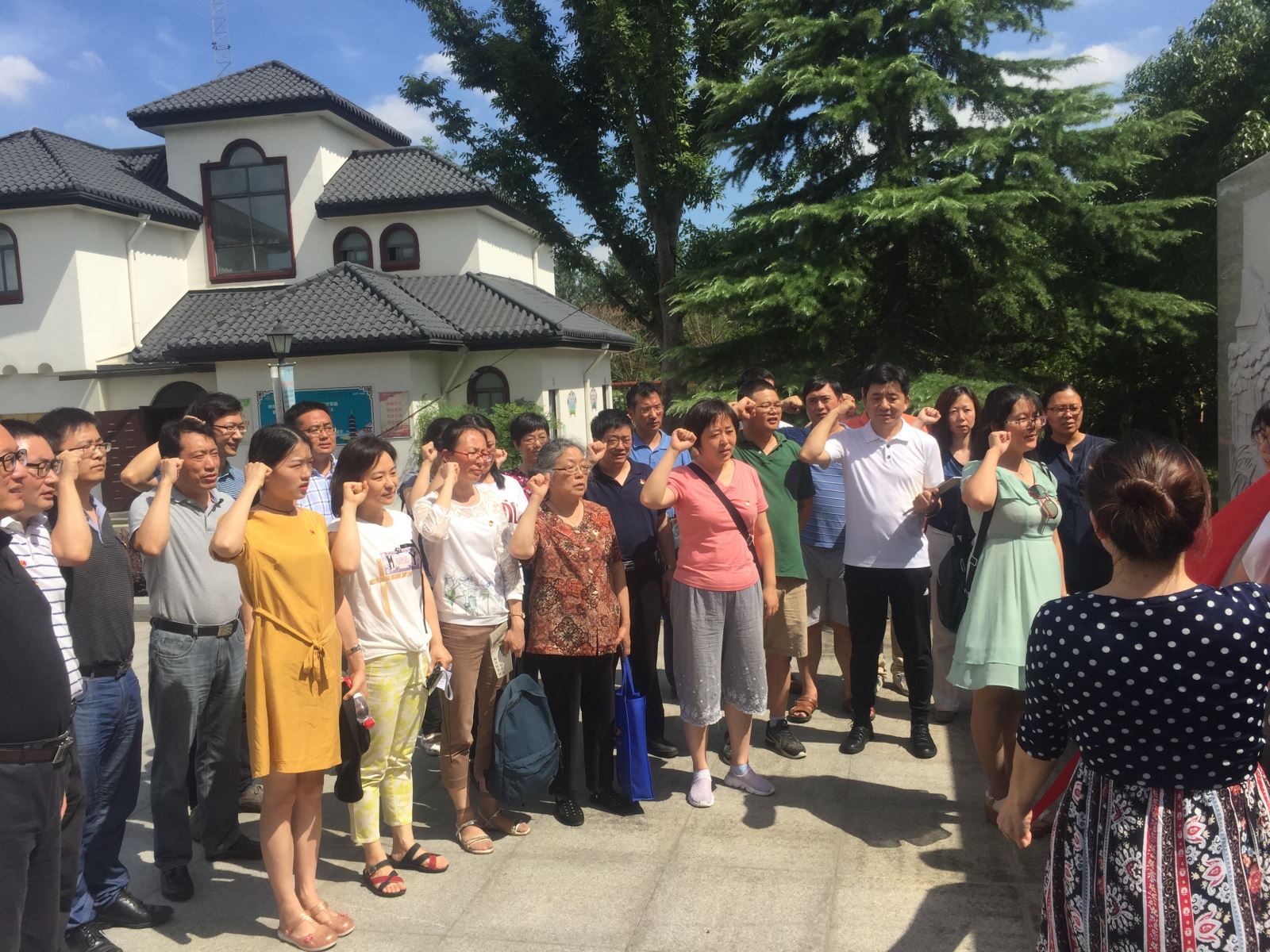最后,全体党员在浮雕群前进行了庄严宣誓,重温了入党誓词,并合影留念。