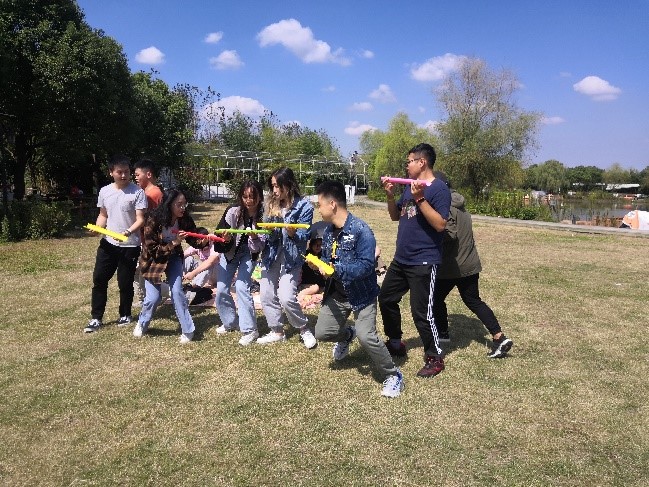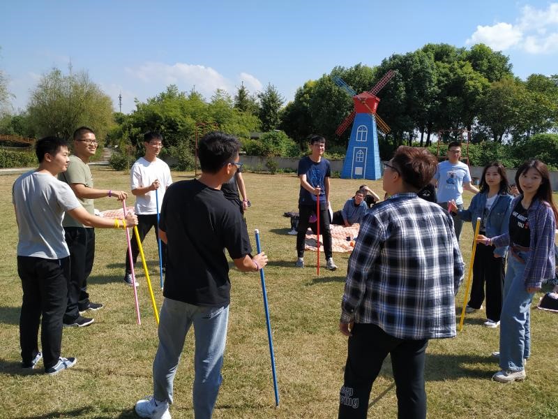 在素拓中心的大草坪上,班主任占翔南老师与研究生们先后经历分组、绘制队旗,共同参与了“不倒森林”、“珠行万里”等集体游戏。在活动中,大家团结一致,为实现集体目标,积极发挥个体优势,配合队友,相互协助,圆满完成了各项任务。素质拓展在增进相互了解的同时,进一步增强了集体荣誉感。