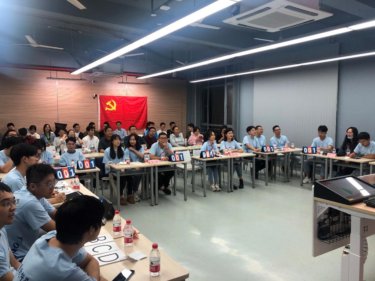为了强化公司员工党员们对四史知识学习的贯彻落实,做到以赛带学,以学促用,培养历史思维、增强历史担当,软件公司党委10月15日晚在嘉定校区诚楼412室举办“深入学习四史,坚守初心使命”四史知识竞赛。出席本次知识竞赛的嘉宾有软件公司党委副书记陈荣,组织员周微微,教工第一支部书记高珍,教工第二支部书记史清江,教师党员代表沈莹,张荣庆,以及研究生辅导员焦嘉欣。其余教师、员工党员们通过线上会议的形式进行观看,真正做到了全院、全员、全覆盖。参加本次竞赛的8只队伍分别来自于本科生员工党支部、18级研究生党支部、19级研究生党支部和20级研究生党支部,及现场前来观赛的员工党员们,共计76名。