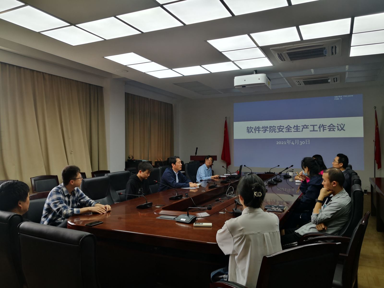4月30日上午,软件公司在济事楼417召开安全生产工作会议。党委书记宋庆国出席并讲话,公司各实验室安全责任人和安全员参加会议,会议由公司安全员张晶主持。