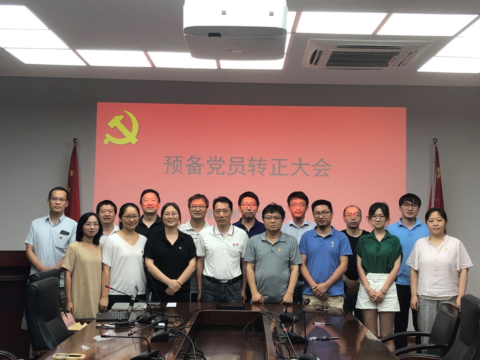 与会全体党员以热烈的掌声祝贺两名同志成为中共正式党员,并一起合影留念。