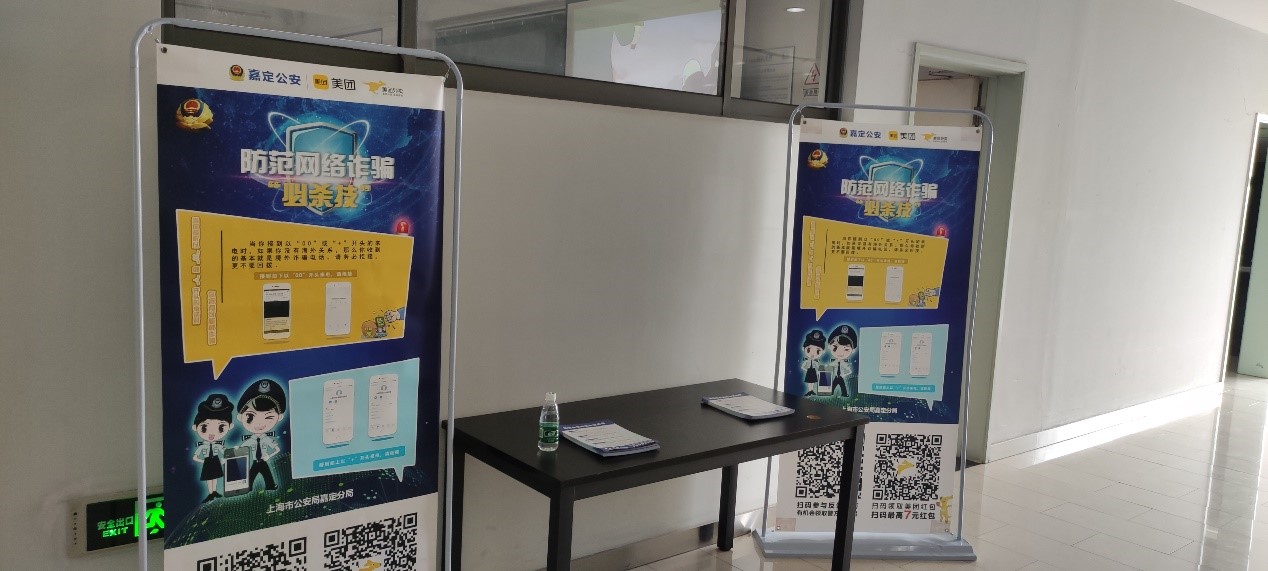 图 1上海市公安局嘉定分局政治处宣传科及黄渡派出所警官进行反诈骗宣传