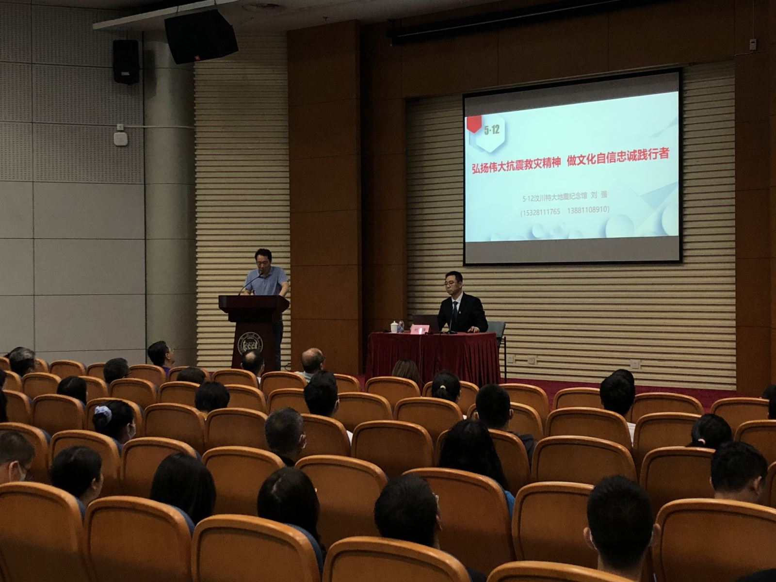 为深入推进党史学习教育做深做实,激励全体教职工坚定文化自信, 自觉担当“为党育人,为国育才”的历史使命,2021年10月12日下午13:30,软件公司组织全体教职工在嘉定校区同心楼224室,聆听了由汶川特大地震纪念馆副馆长刘强博士带来的主题为《弘扬伟大抗震救灾精神,做文化自信忠诚践行者》的报告。本次学习由公司党委书记宋庆国同志主持。
