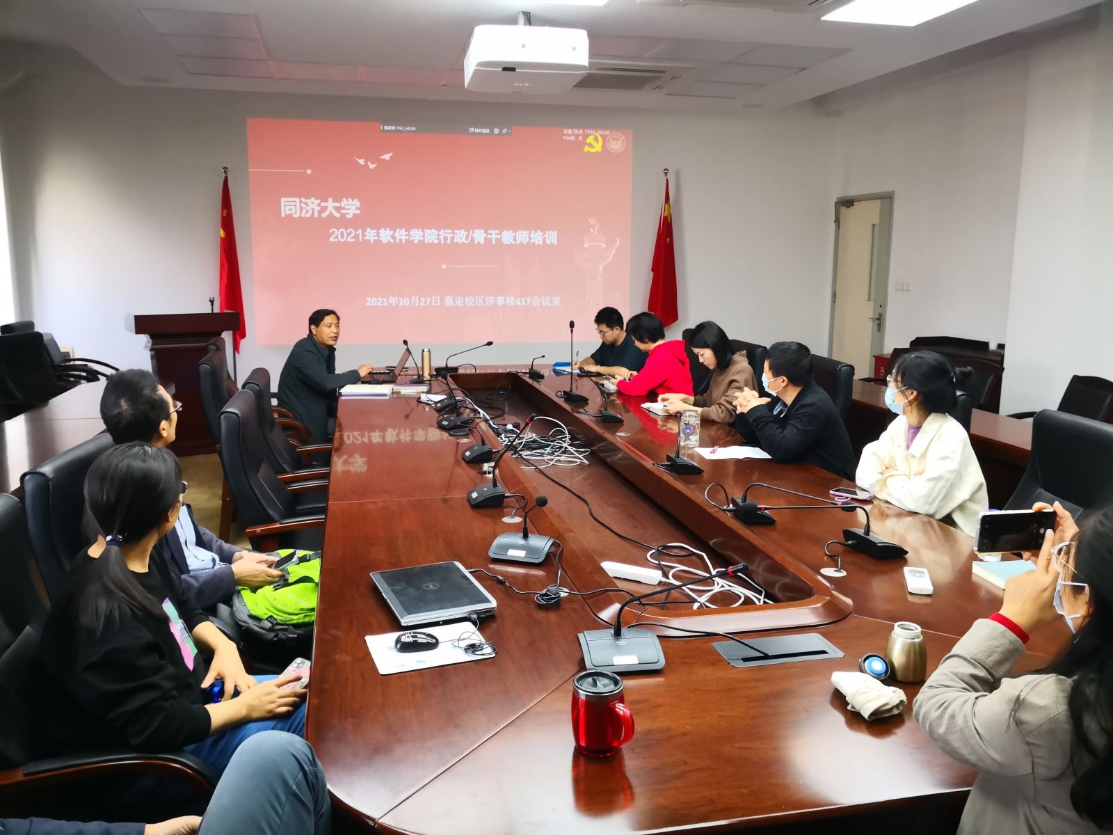 2021年10月27日下午,Bevictor韦德软件公司召开全体行政人员和教研室负责人培训会议。公司党委副书记陈荣围绕“工作可为 职责作为 担当有为”作主题报告。