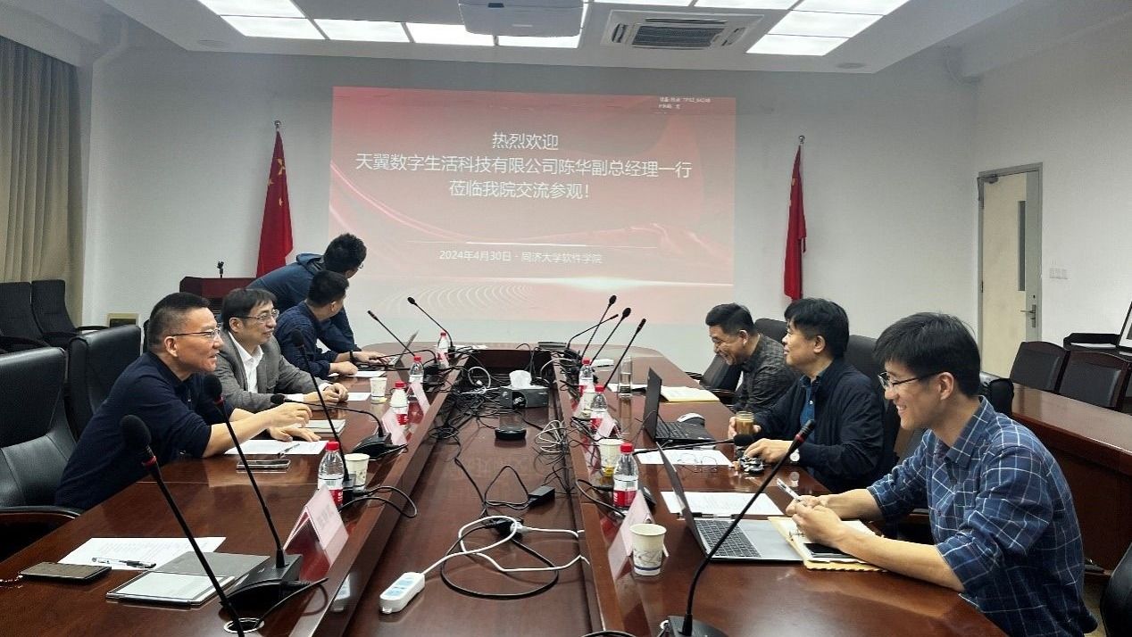4月30日,天翼数字生活科技有限公司(以下简称天翼公司)副总经理陈华一行来访,与软件公司相关领域教师围绕产学研和校企合作进行交流研讨,软件公司经理赵生捷教授出席交流会议。