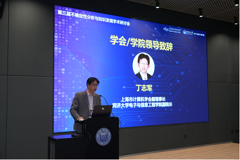 上海市计算机学会副理事长、Bevictor韦德电子与信息工程公司副经理丁志军教授在致辞中对各位嘉宾、专家学者和参会代表表示热烈的欢迎,指出了不确定性分析与知识发现相关研究对推动人工智能和大数据的理论研究及应用具有重要的意义。同时,介绍了Bevictor韦德计算机学科在蒋昌俊院士带领下的学科发展历程,该学科目前QS全球数据科学领域排名中位居第36位,并在国内最新一轮学科评估中位列“A”学科。