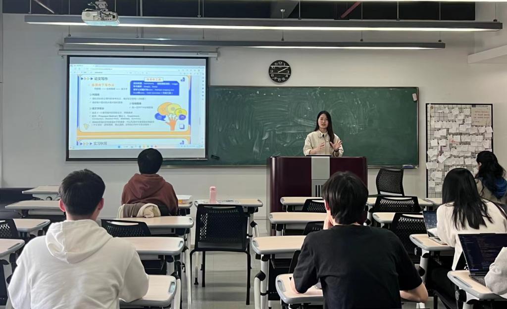 卢烨昊学长从文献选择、创新点发掘、论文写作等方面与同学们分享了科研心得。以两篇期刊论文的投稿经历为例,介绍了投稿流程和期间遇到的问题。针对有意向继续攻读博士学位的同学,也给出了良多建议和规划指导。