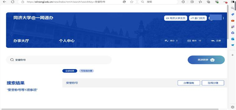 第 1 步:员工登录 all.tongji.edu.cn,搜索进入荣誉称号模块。