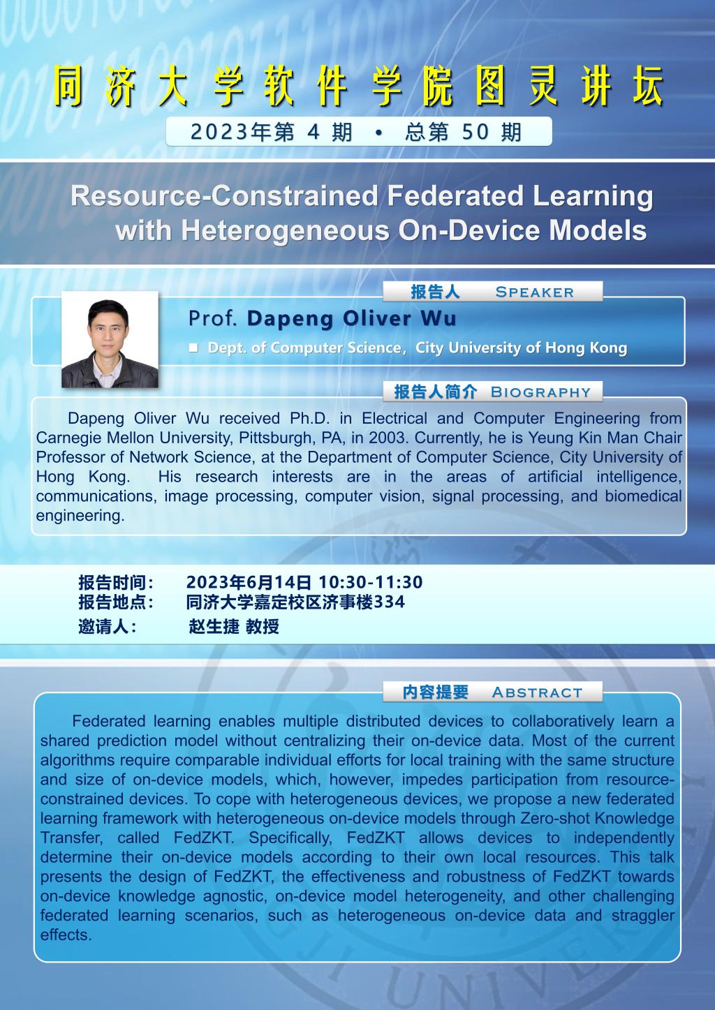 图灵讲坛(第50期):Resource-Constrained Federated Learning with Heterogeneous On-Device Models